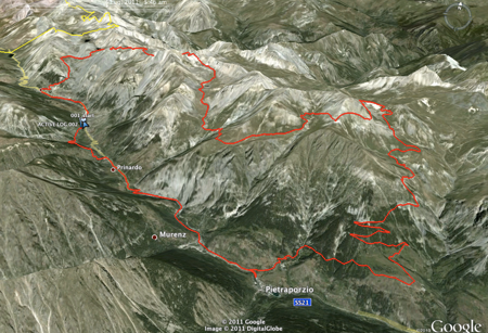Dopo tanto portage, un bel po’ di spintage e per fortuna anche un sano inatteso pedalage arriviamo al colle Oserot (e resistiamo alla tentazione della “via di fuga” verso la Bassa di Terra Rossa che ci consentirebbe una rapida discesa a bersezio!) … ed è qui che il gioco si fa duro!!!