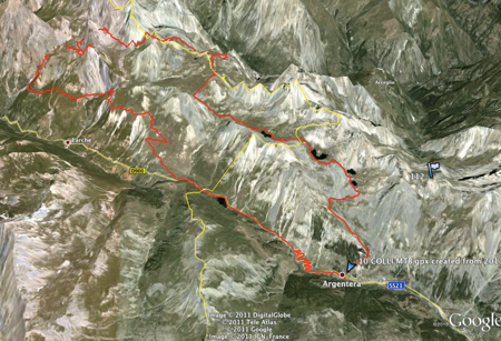 2) il giro può essere accorciato: saltando la vetta della tete de viraysse ("solo" 8 colli) e tagliando via il tratto val maira tirando dritti dal colle portiolette al colle Gypiere d'Oronaye ... guardatevi la cartina!!!